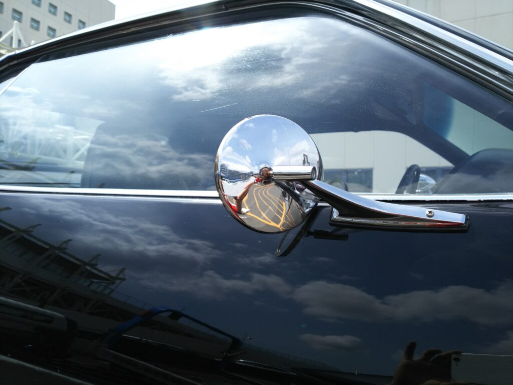 アメ車は助手席側のサイドミラーが無い場合が多いですが、車検不適合になるので取り付けます。