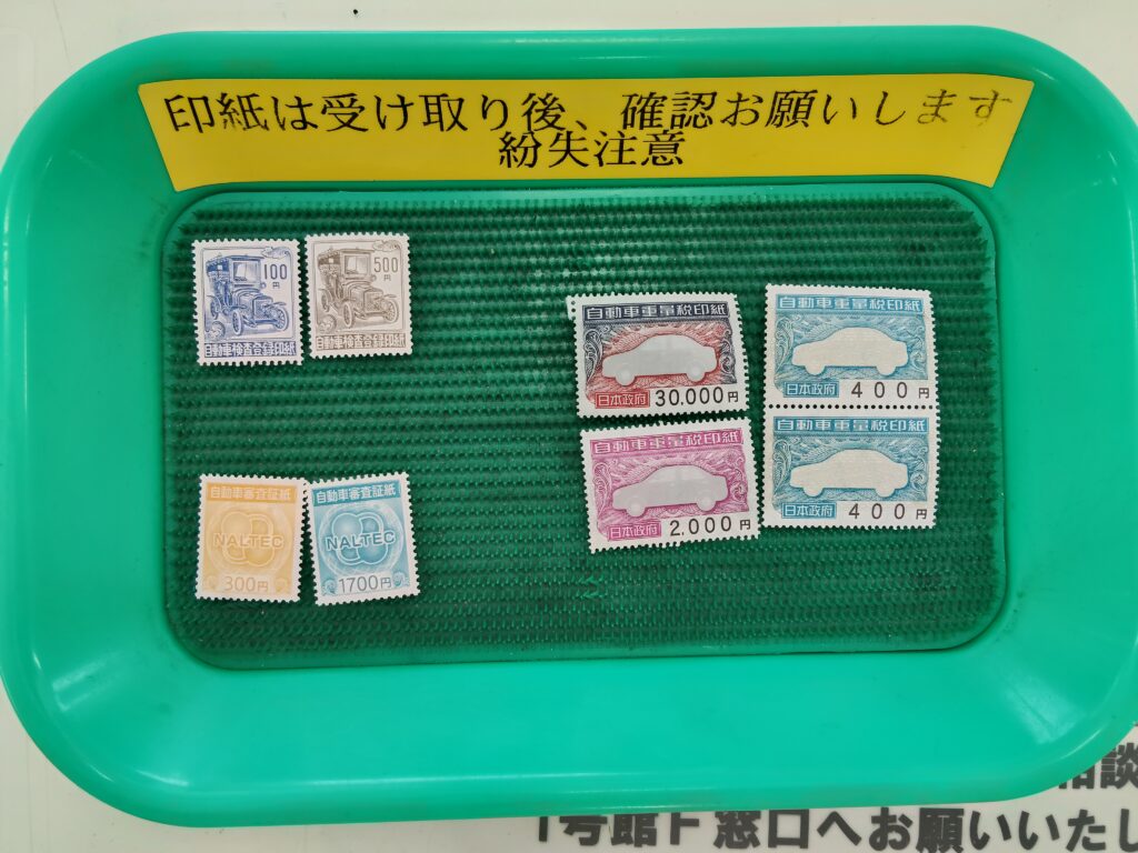 『重量税印紙』『審査証紙』『登録印紙』