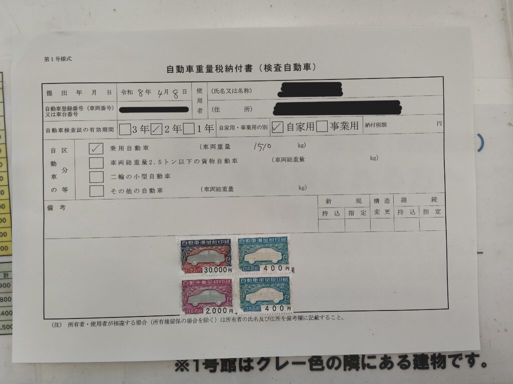 『重量税印紙』を「自動車重量税納付書」へ