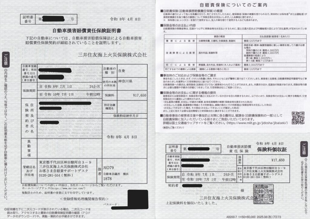 それぞれの書類に名前や自動車登録番号などが印刷されて出てきます。