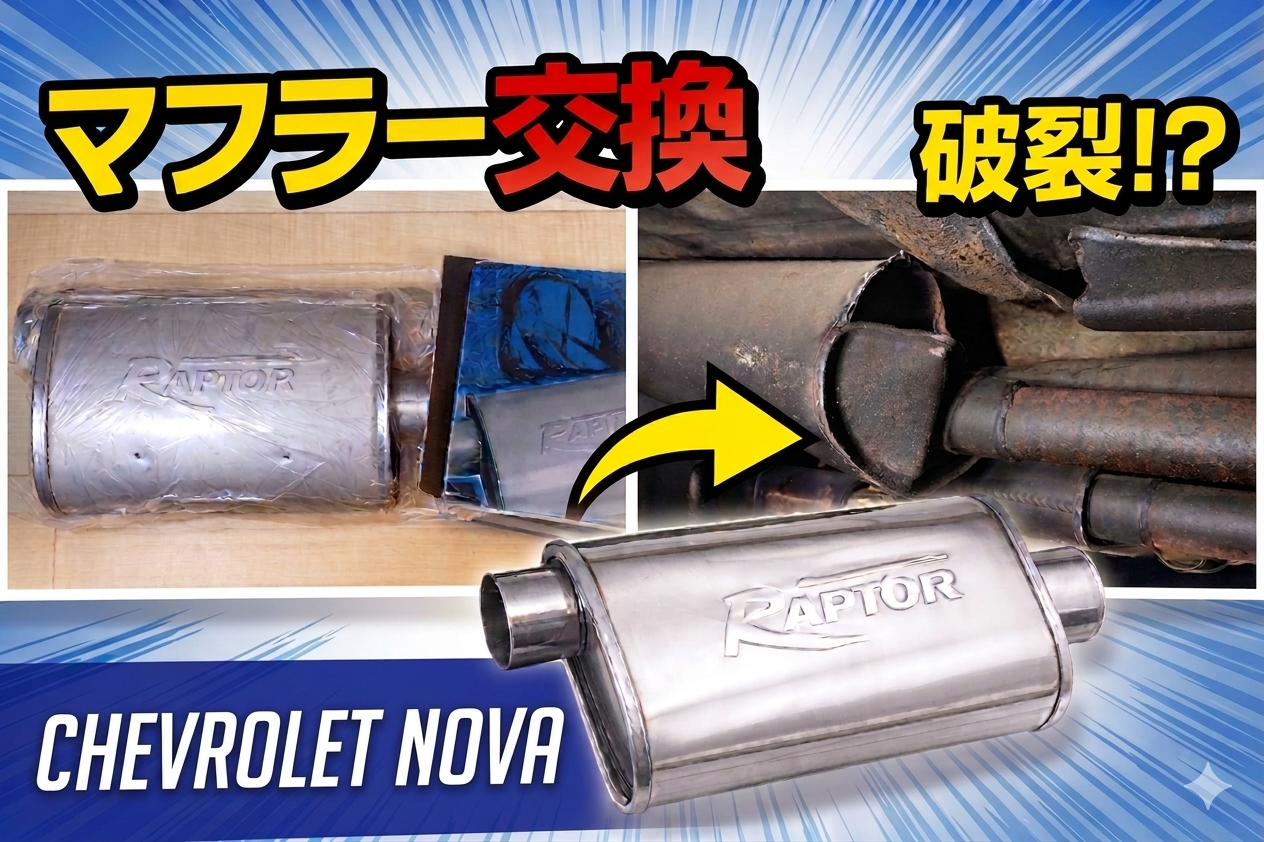 シボレー・ノバのマフラーが破裂したので交換します。