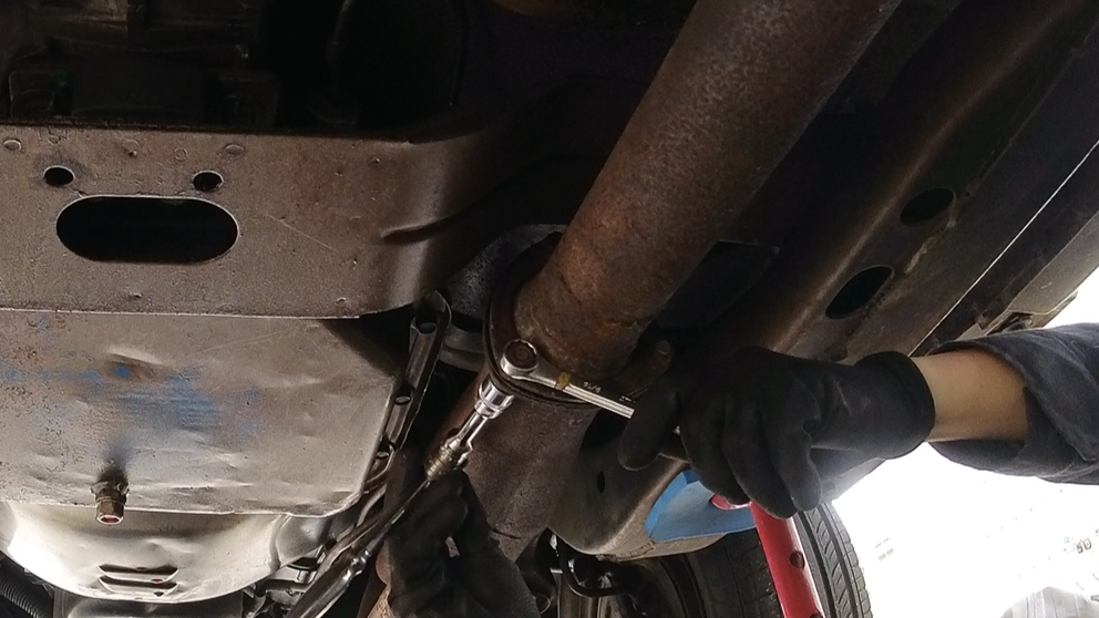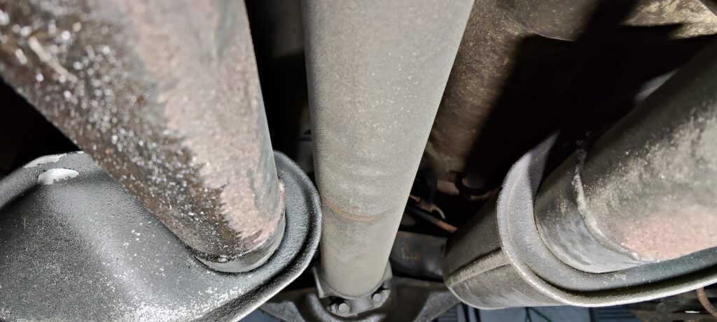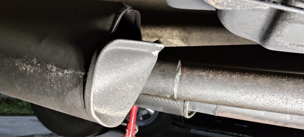 この影響でマフラーが変形し、プロペラシャフトに干渉するようになってしまいました。