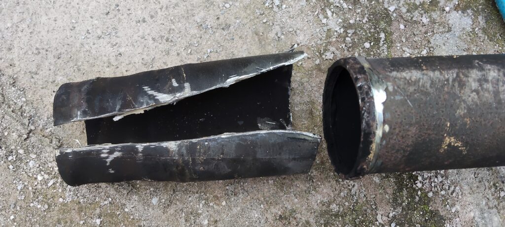 しかし、うまく絞り切れず排気漏れをおこしたのでマフラーパテで埋めました。