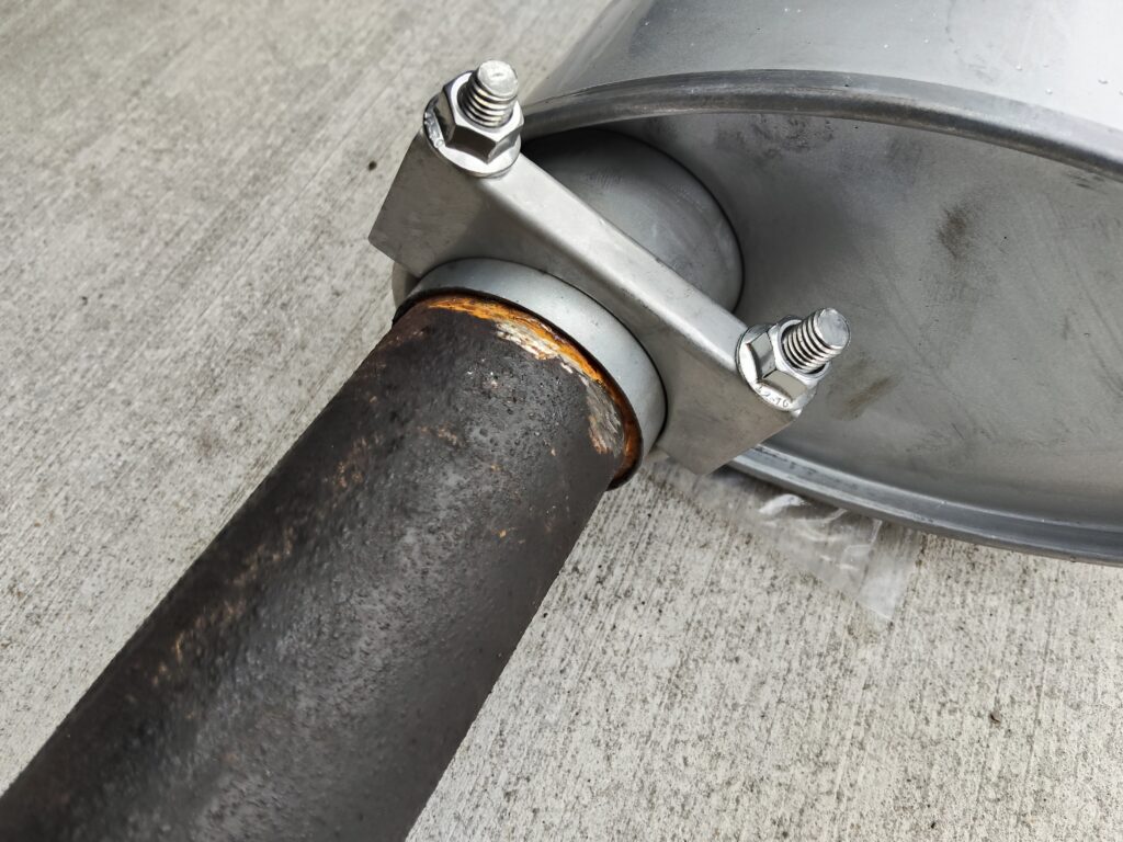 筆者は溶接できないので、Uボルトクランプにて締め付けて締結を試みます。